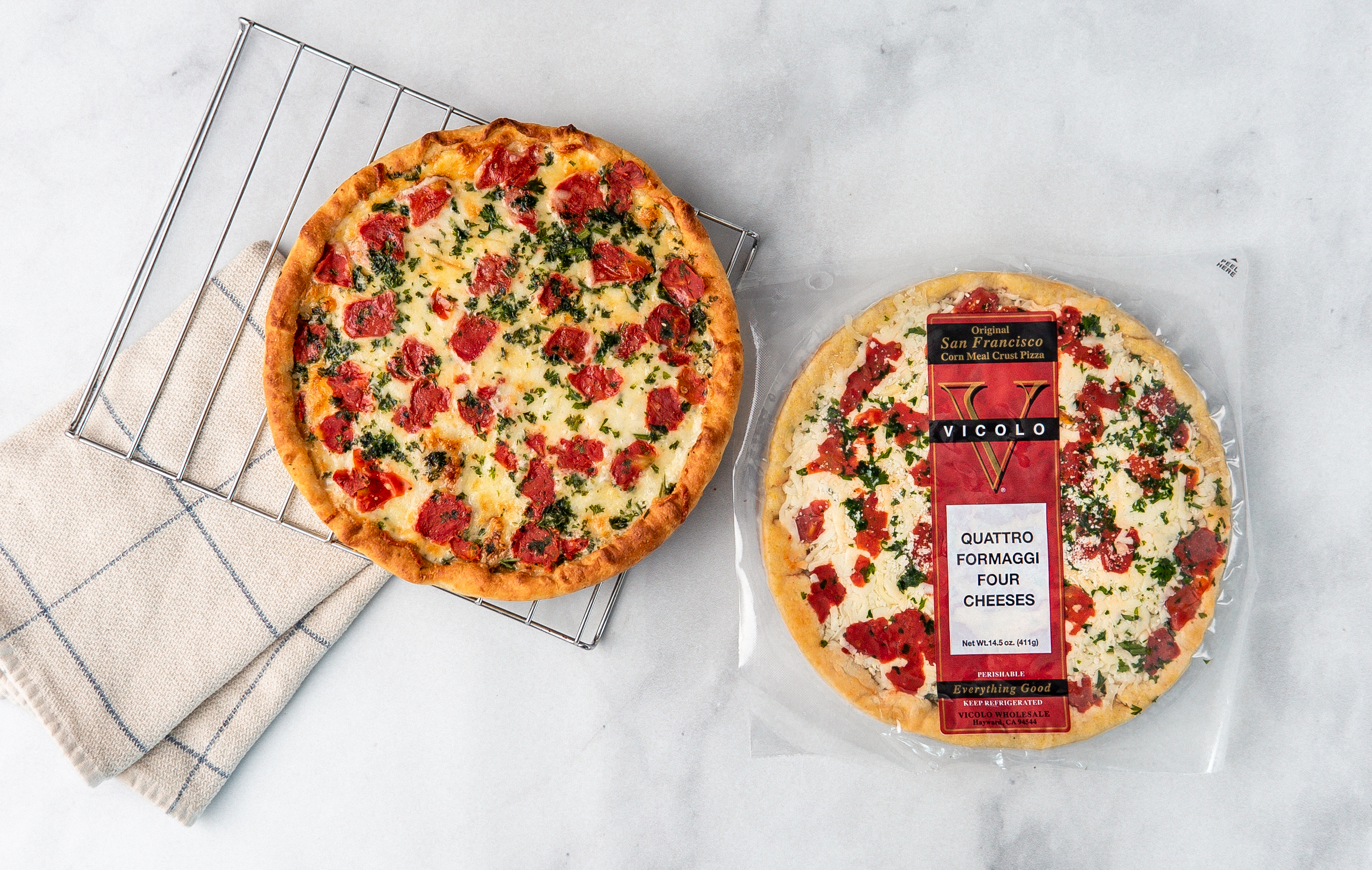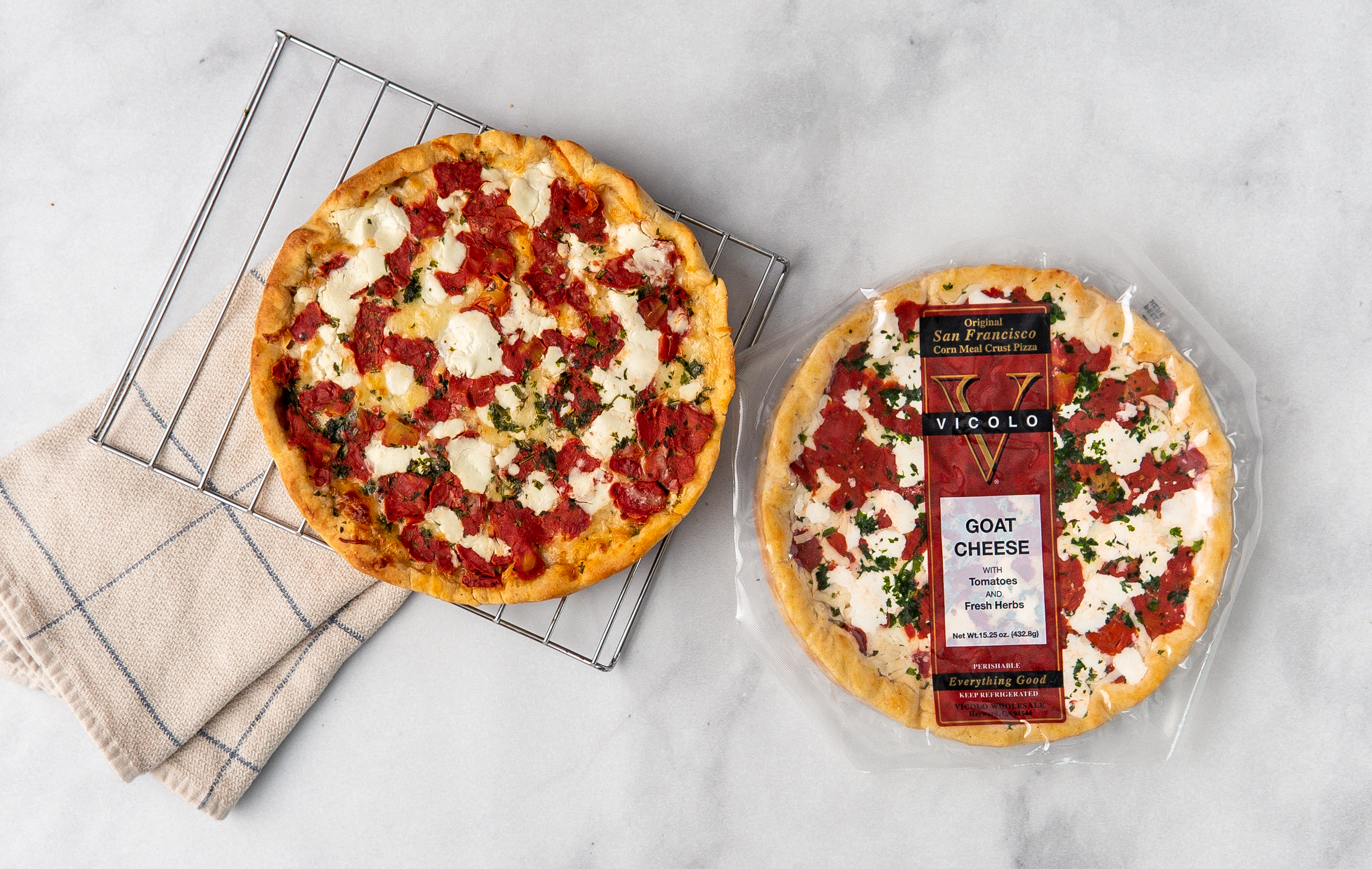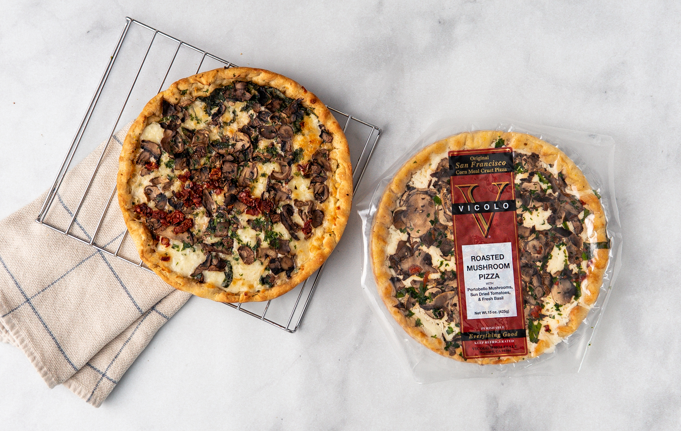 We’d like to introduce you to a new concept in store-bought pizza. An innovative product both in quality and versatility: Vicolo Original San Francisco Corn Meal Crust Pizzas. For these artisan hand-made pizzas we combine our signature original Corn Meal Crust with the finest cheeses and freshest vegetables. Vicolo Pizza can be served freshly baked or cooked from frozen. We thank you for sharing our passion for wholesome food as well as our pizzas.
