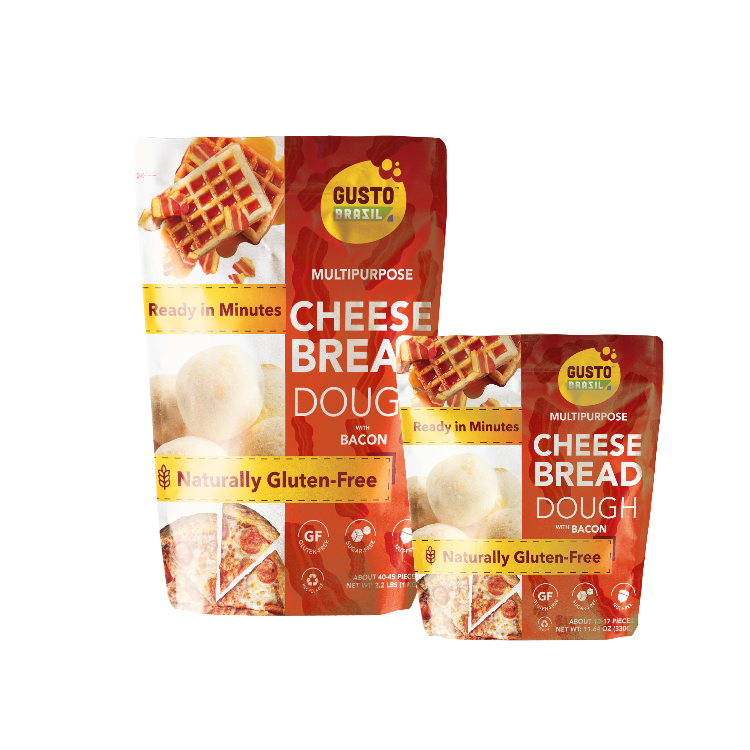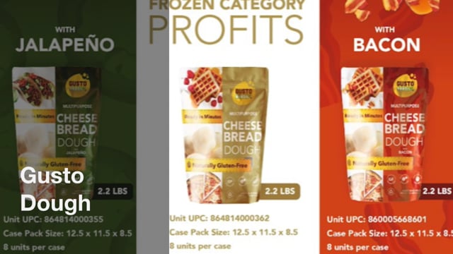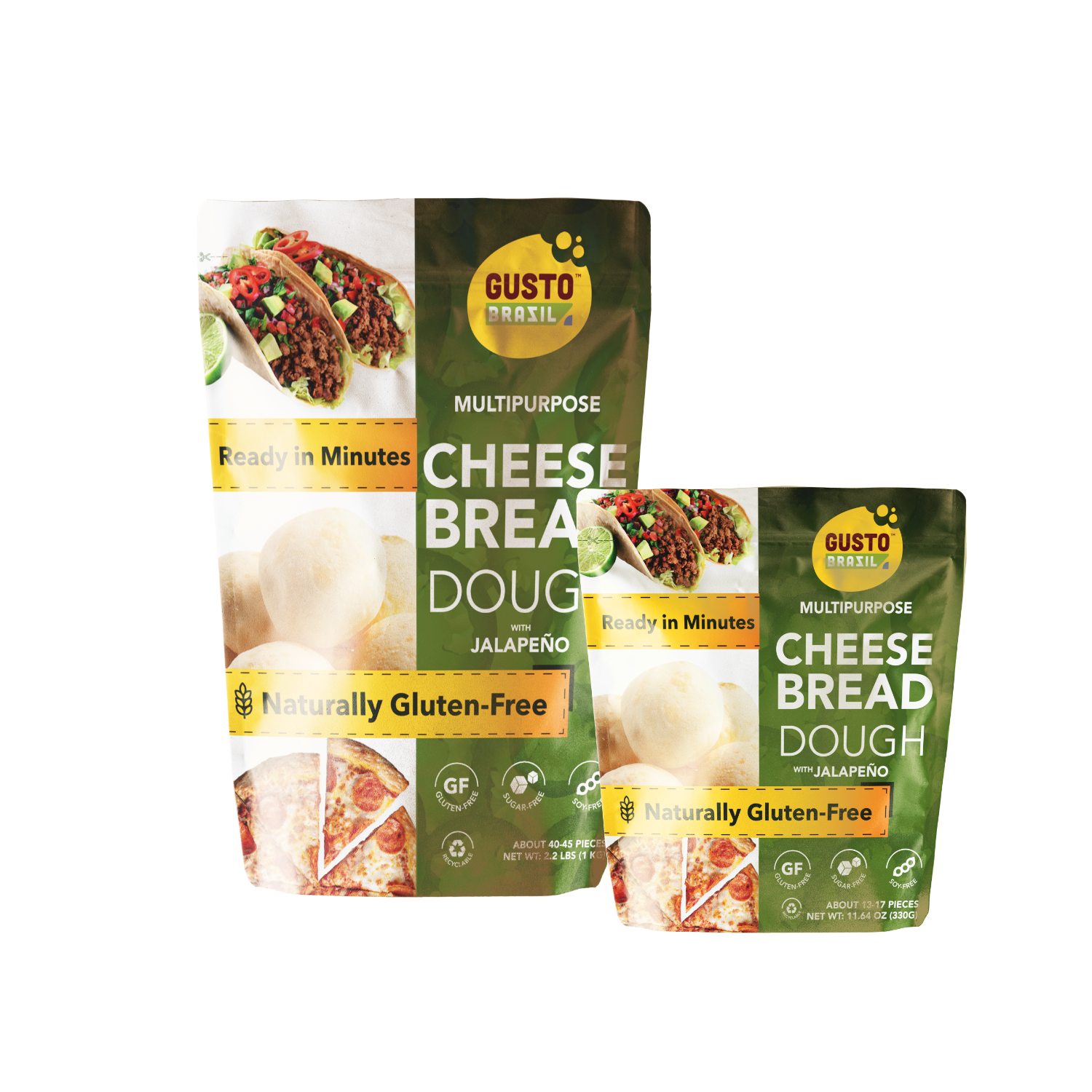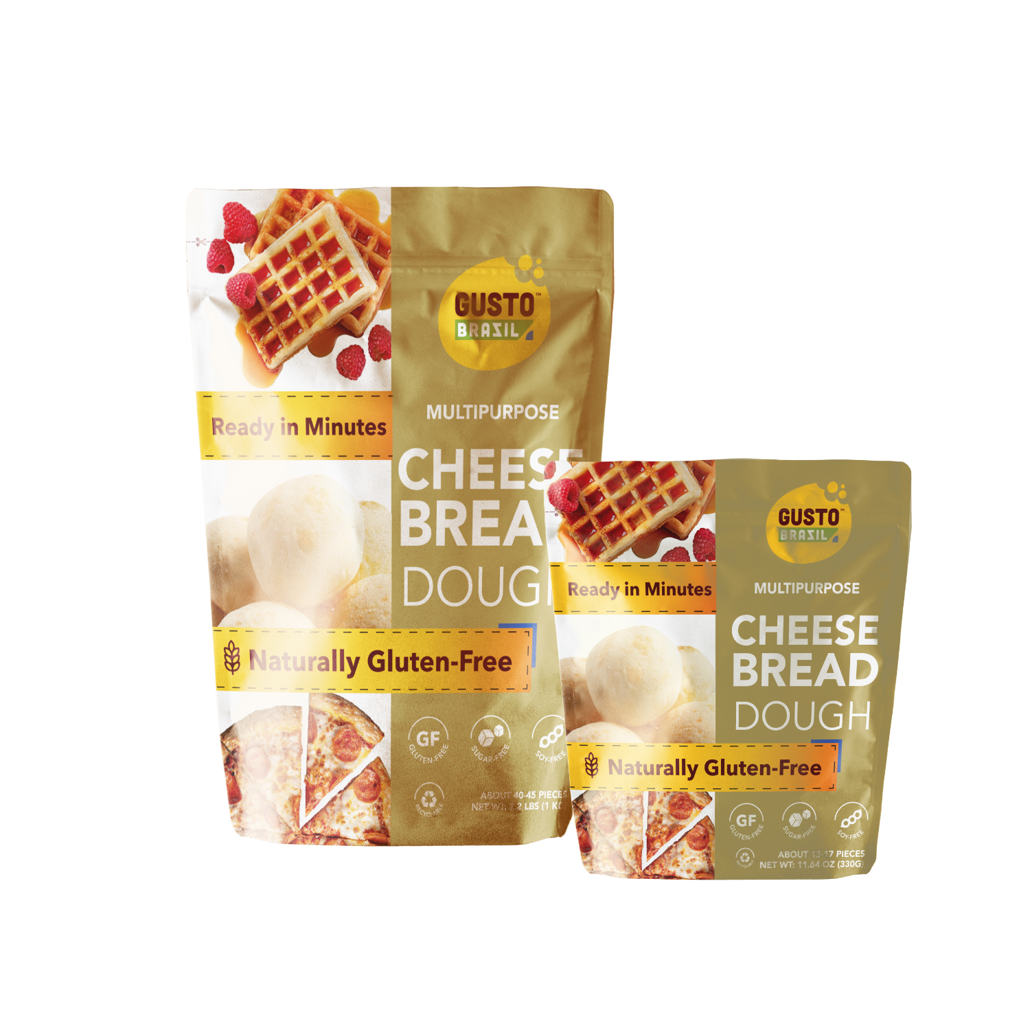 Products & Services Description (BRAZILIAN CHEESE BREAD): We have a very unique product, multi-purpose cheese bread dough, naturally GLUTEN-FREE, made with Tapioca flour and real cheese: Mozzarella and Parmesan. Also, NON-GMO, SUGAR-FREE, TRANS FAT-FREE, ALL NATURAL, and LOW CARBS. Besides being the most nutritious in the market, our dough is without a doubt the most versatile, enabling our consumers to make tortillas, waffles, and delicious pizzas out of our rolls, without the addition of any ingredient.